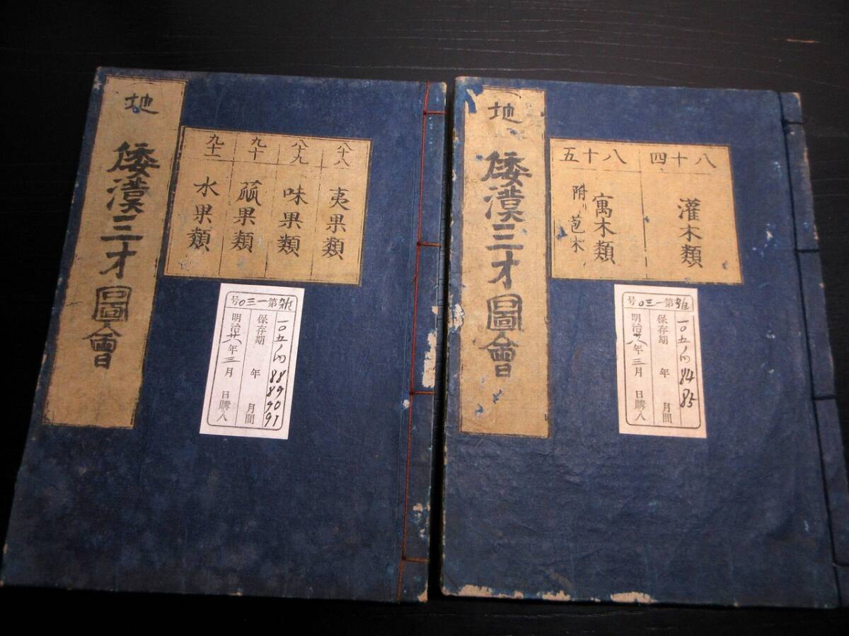 - ★0804和本江戸期事典植物図鑑「和漢三才図会」2冊/寺島良安/絵入古書古文書/木版摺り/木/竹/水草