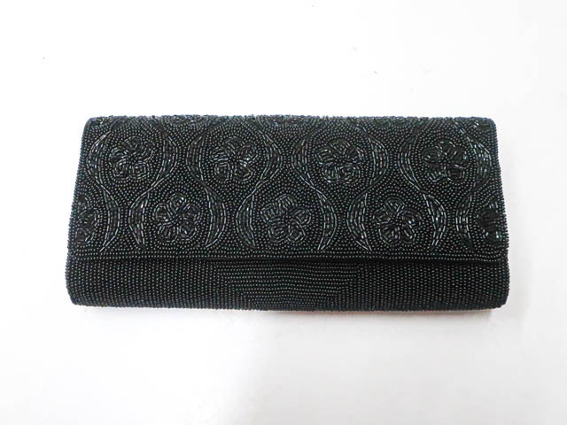 > 《古美術京松》【着物】和装小物 クラッチバッグ ビーズ 花文 r7w03-1389