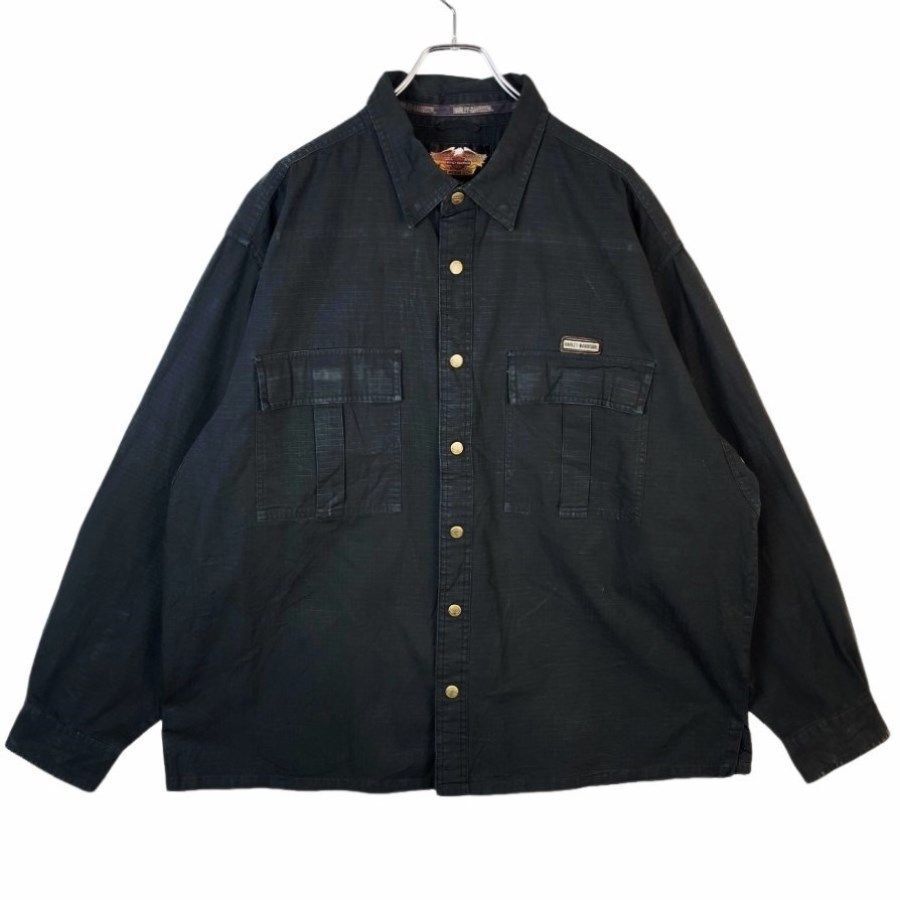 - ハーレーダビッドソンHarley Davidson長袖シャツコットンシャツロゴタグワンポイント黒ブラックvintageヴィンテージ41227