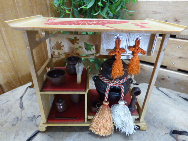 - ま356.野点飾り ミニチュア 和風 茶棚 一服千の知恵 置物