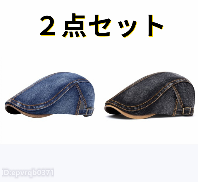 - 2点セット◇ハンチング キャスケット カウボーイハット メンズキャップ 紳士 帽子 ゴルフキャップ フリーサイズ 黒/ブルー