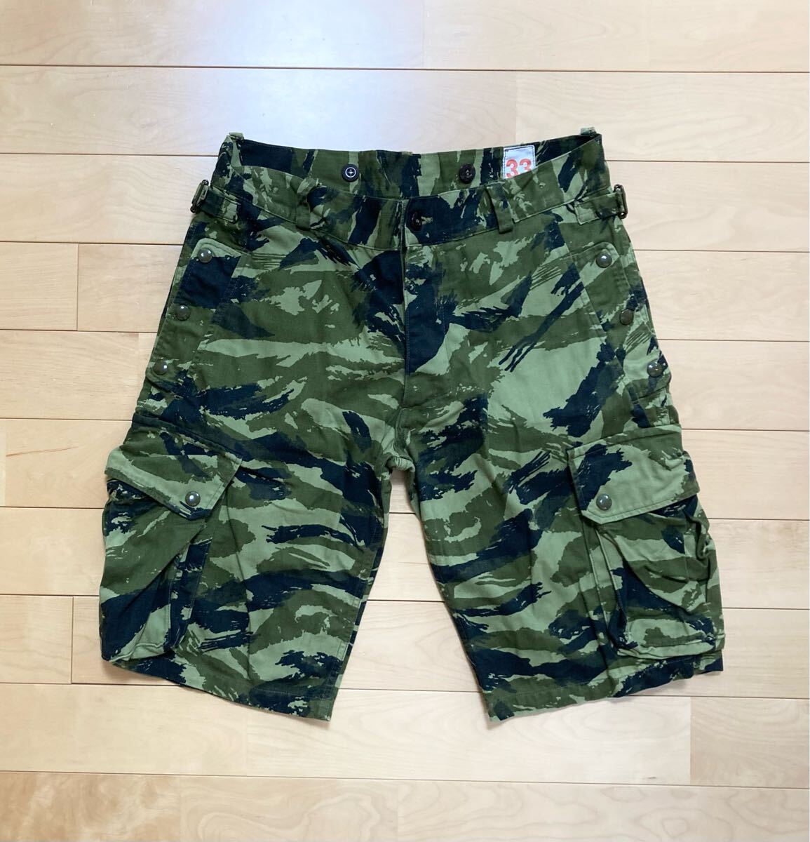 > W33☆[The Real McCoy's] タイガーカモ カーゴショーツ ショートパンツ 33 迷彩 グリーン 日本製 リアルマッコイズ