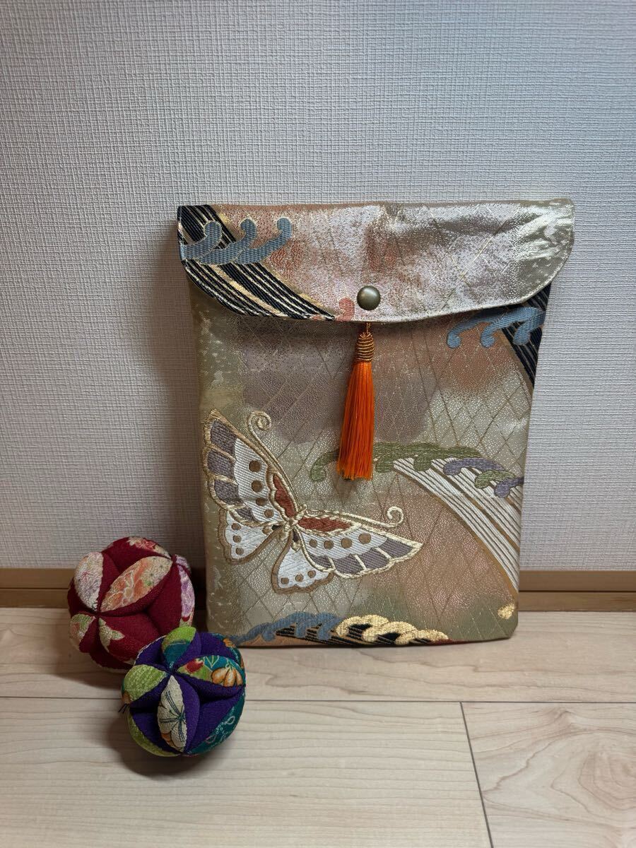 - 納経帳 御朱印帳ポーチ 四国八十八ヶ所 大判西国三十三ヶ所 ハンドメイド パソコン タブレットケース ノート 1点物 帯リメイク