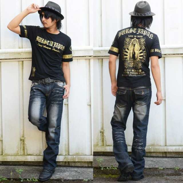 > BURST JAPAN 半袖Tシャツ バック般若マリアプリントデザイン半袖Tシャツ 70718新品 ブラックゴールド M