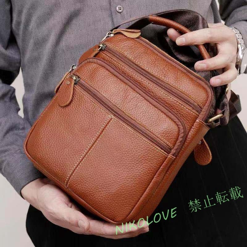 - 新品 SALE メンズショルダーバッグ 本革 牛革 メンズ 斜めがけ バッグ 通勤 大容量 ブラウン