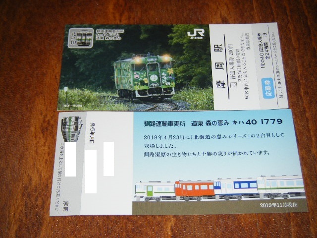 - JR北海道 北の40 記念入場券 摩周駅発売分1枚応募券付。