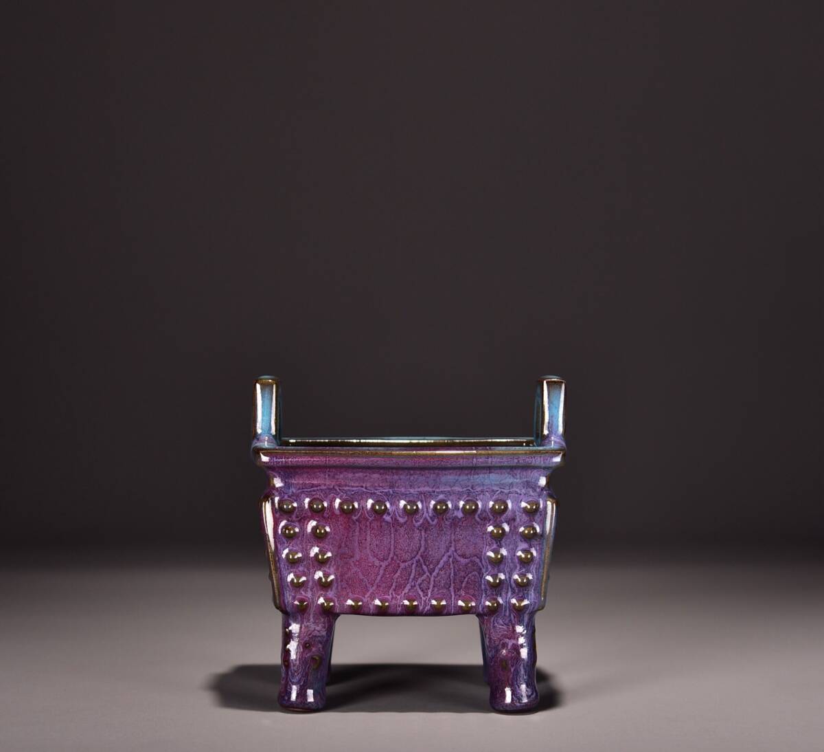 - ▽鴻▽ 宋 鈞窯 紅釉 四方鼎式炉 古陶瓷品 置物 古賞物 中国古玩 中国古美術