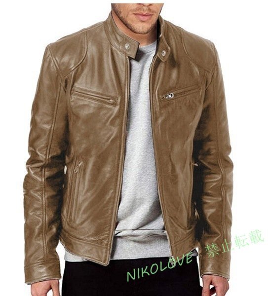 - 新品 メンズレザージャケットライダースジャケット バイクジャケット ジャンパー ブルゾン 革ジャン カーキ S~5XL 3色