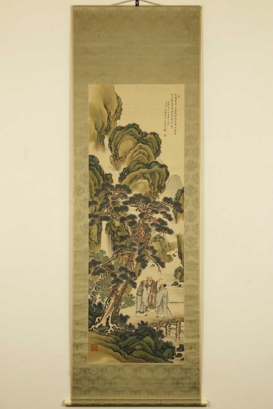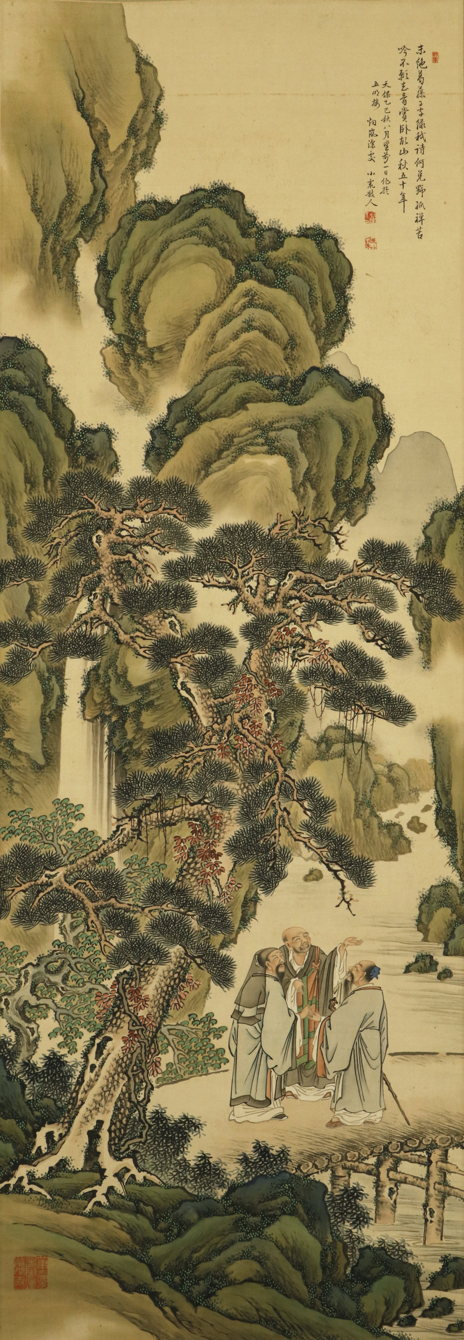 - 【真作 小虎落款】掛軸「田能村直入 青緑虎渓三笑図」弘化2年32歳 南画家 田能村竹田養子 南宗画学校 絵画