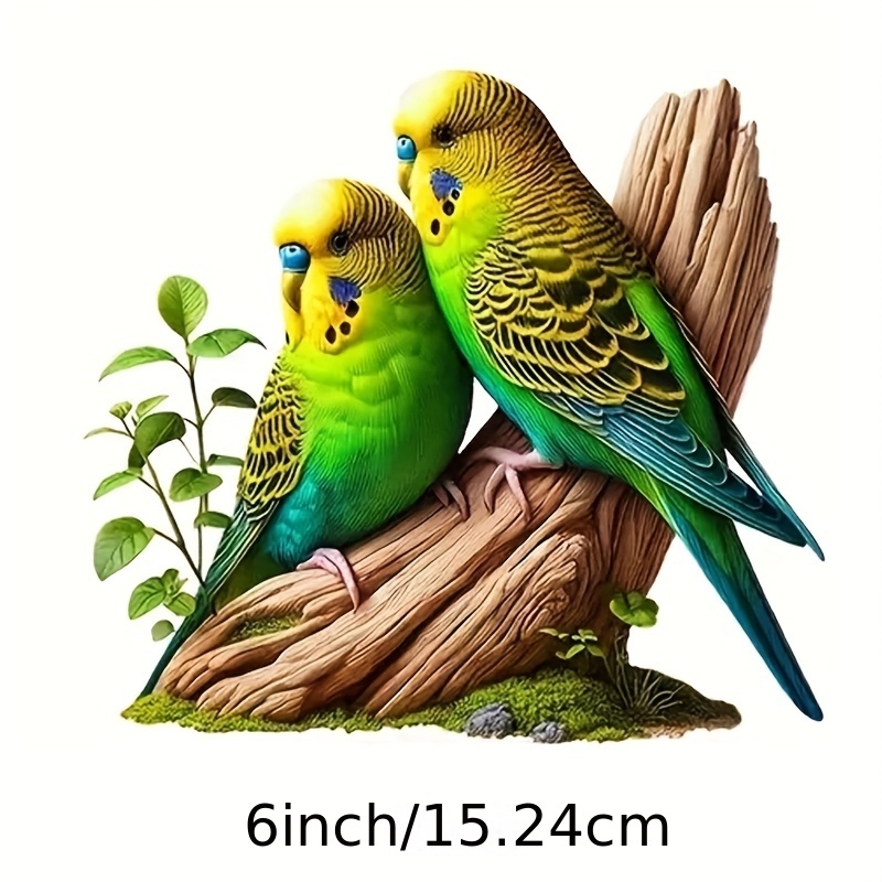 > ステッカー 2匹のインコ 鳥 車用 ノートパソコン 15cm 緑 黄色 おもしろ おしゃれ シール ビニール素材 かわいい アニマル 窓用 防水 t5963