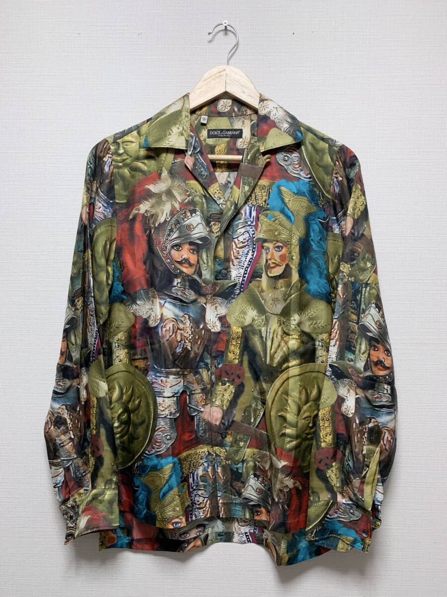 > [DOLCE&GABBANA] 13SS LOOK5 騎士 オープンカラー シルクシャツ 14.5 37 イタリア製 G5BI6T FS1VA ドルチェアンドガッバーナ
