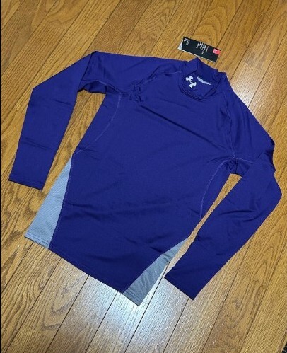 > 【廃番】Mサイズ アンダーアーマー コンプレッション 長袖ハイネック モック MD パープルグレー紫 サッカー トレーニング 刺繍ロゴ MD