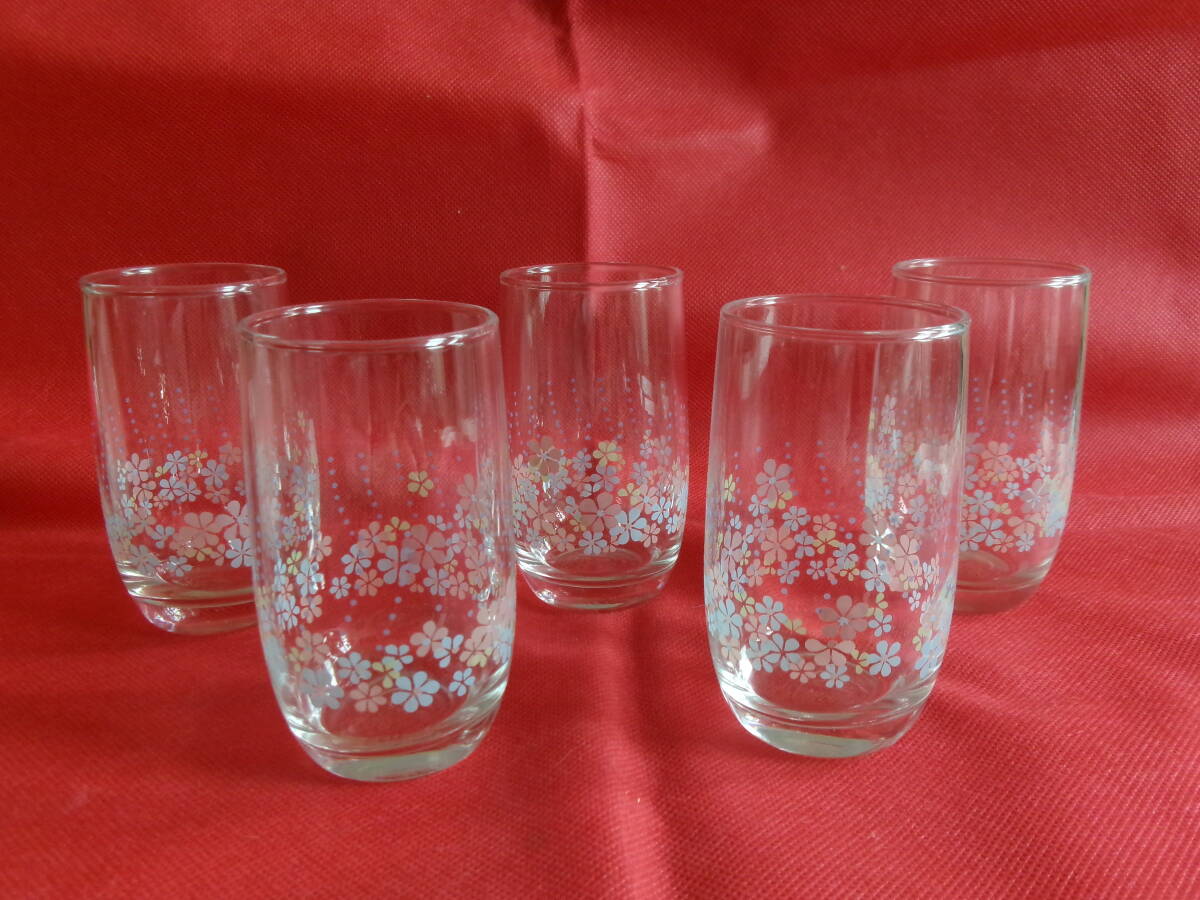 - レトロ 未使用品 花柄 グラス コップ タンブラー 5個セット