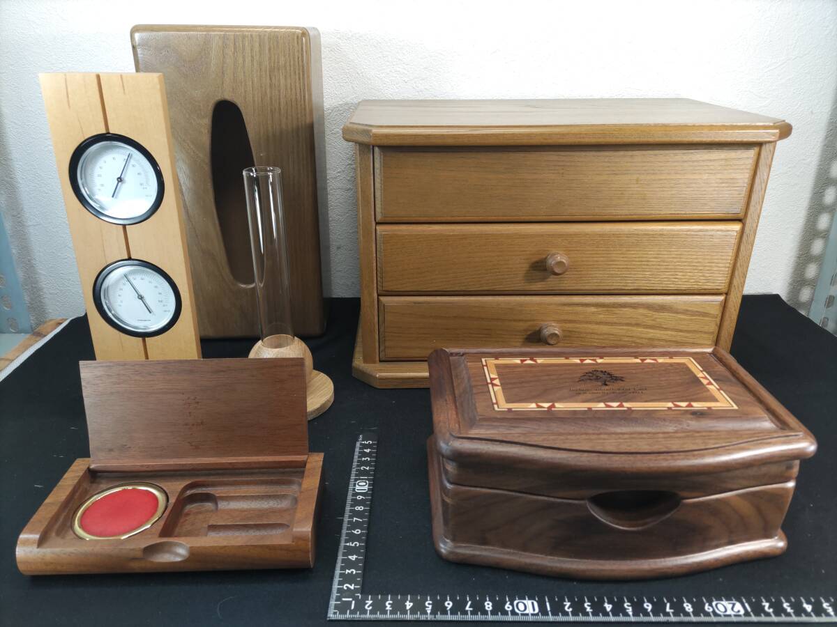 - ■送料無料!■まとめて■象嵌細工・宝石箱■印鑑ケース■温湿度計■小物入れ■小引き出し■木製■ティッシュケース■6点セット!