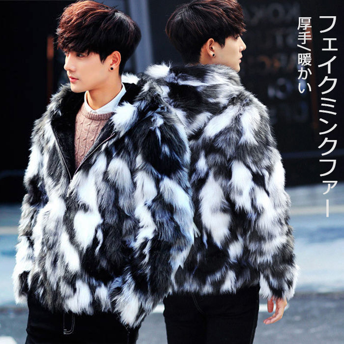 - 美品 フード付き フェイクミンクファー 秋冬 ブルゾン 厚手ジャケット メンズパーカー ショートコート Zh042-1 L