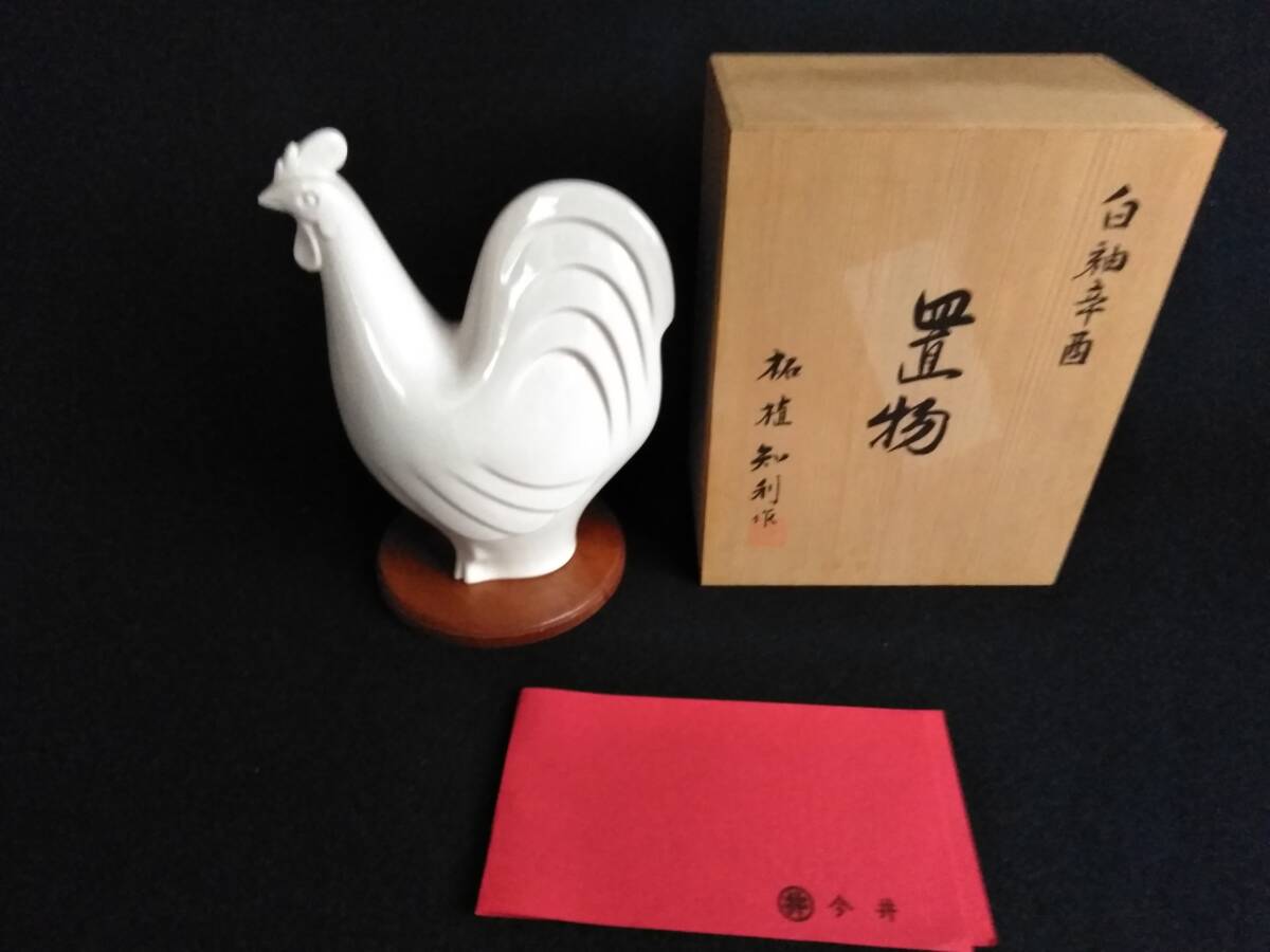 - 柘植知利作 白釉辛酉 とり 酉 鳥 木箱付 縁起物 招福 干支(A-29)