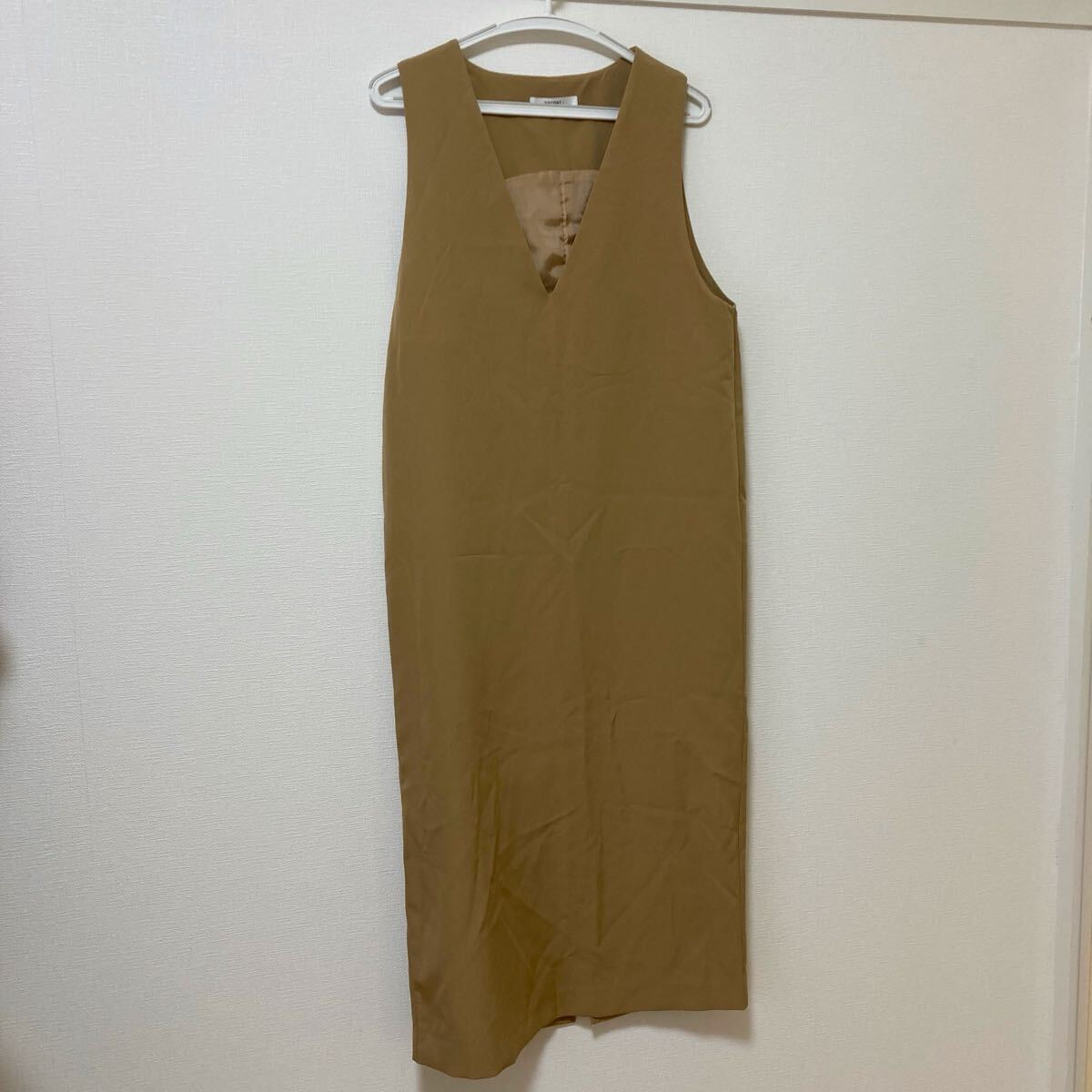 - ☆中古☆DISCOAT ノースリーブ ワンピース ロング丈 ベージュ フリーサイズ
