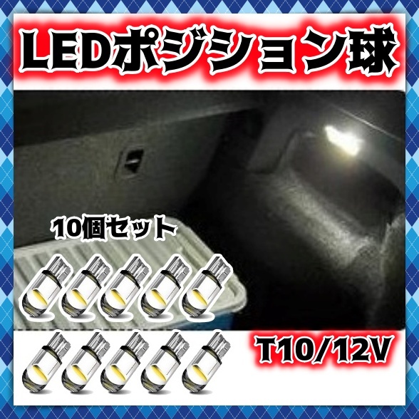 - T10 12V LEDバルブ 10個セット ポジション球 ルーム球 ナンバー灯 ライセンスランプ バックランプ スモール ホワイト 白 ウェッジ球 汎用