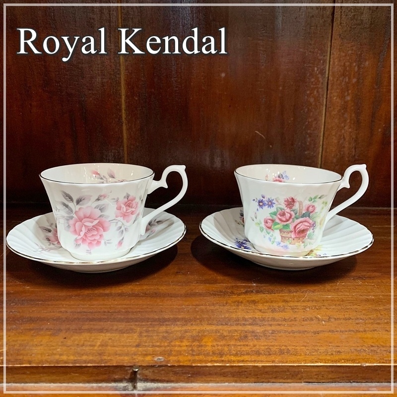 - 【福岡】Royal Kendal ロイヤルケンダル カップ&ソーサー 2種 2客セット バラ ピンク 花柄 金彩 ボーンチャイナ イギリス【RU0709-14】
