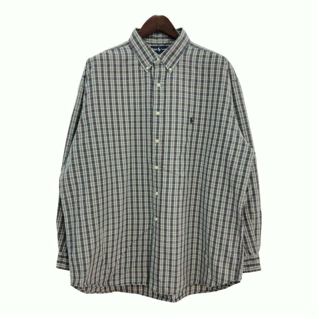 - 90年代 RALPH LAUREN ラルフローレン BLAKE 長袖ボタンダウンシャツ 大きいサイズ チェック マルチカラー(メンズ XXL)中古 古着 T7998