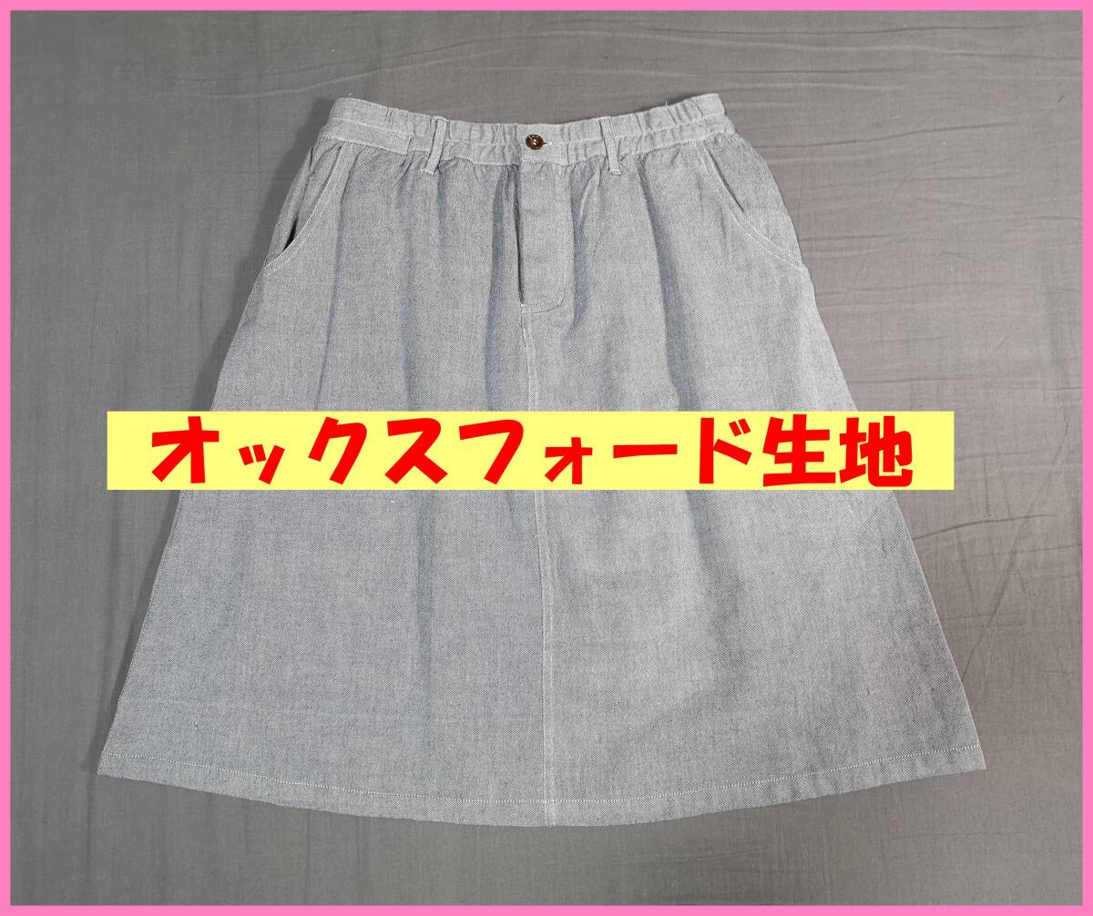 > BOTS‐310☆春秋☆新品☆送料込み☆即決☆ナチュラル系☆綿☆オックスフォード生地☆スカート☆Mサイズ☆ブルー系☆裏地有り☆