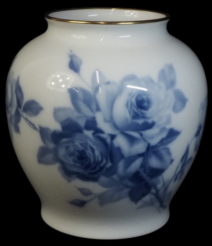- 昭和ビンテージ 「 大倉陶園 有田焼 本金彩 染付 オオクラブルーローズ花瓶 」 1980年代 TMA704