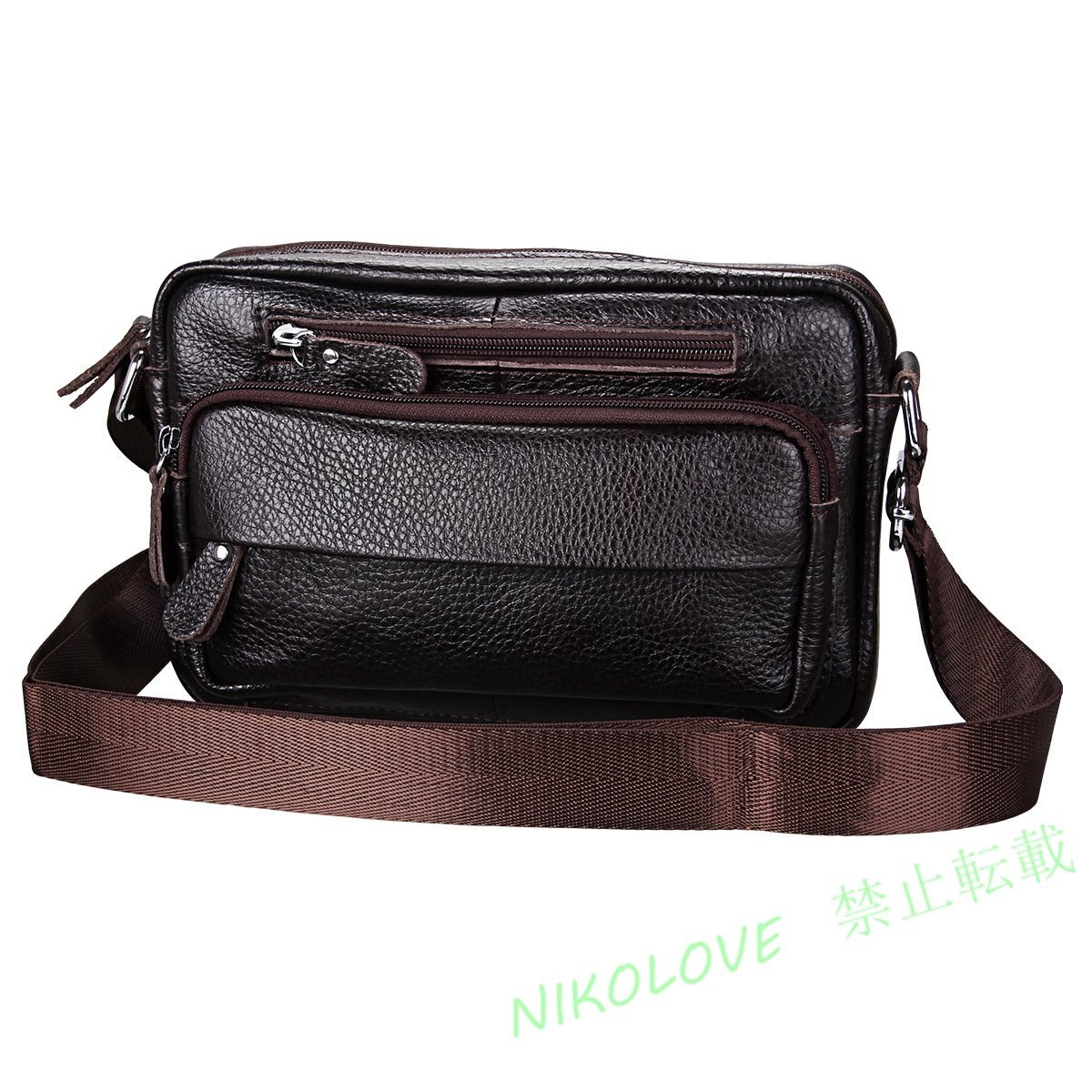 - 新品 本牛革 全バッファローレザーショルダーバッグ 黒 男女兼用 限定鞄 秋 牛革 使い勝手抜群 サコッシュ ブラック ボディ コーヒー