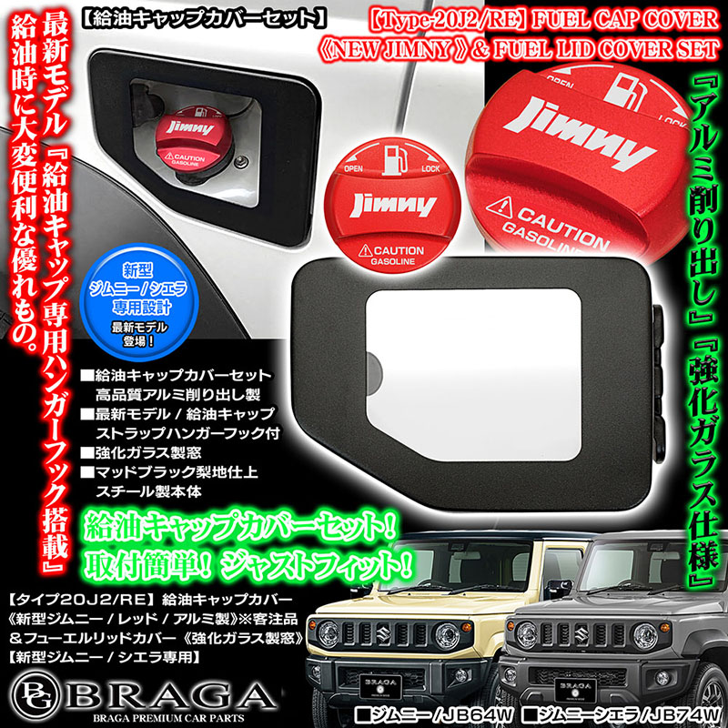 > ジムニーJB64W/タイプ20J2/レッド 給油キャップカバー/無地 フューエル リッド カバーセット /強化ガラス窓付 BG BRAGA