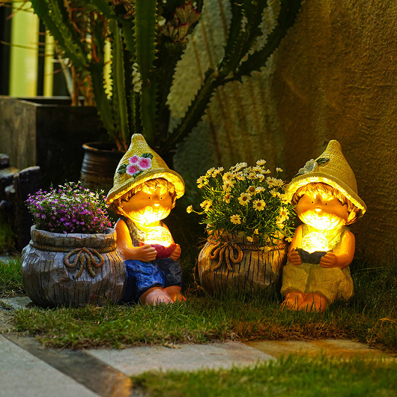 - 帽子を被った子供のガーデンオブジェ スマート感光チップ内蔵 装飾品 アート おしゃれ かわいい 庭 インテリア プレゼント オーナメント