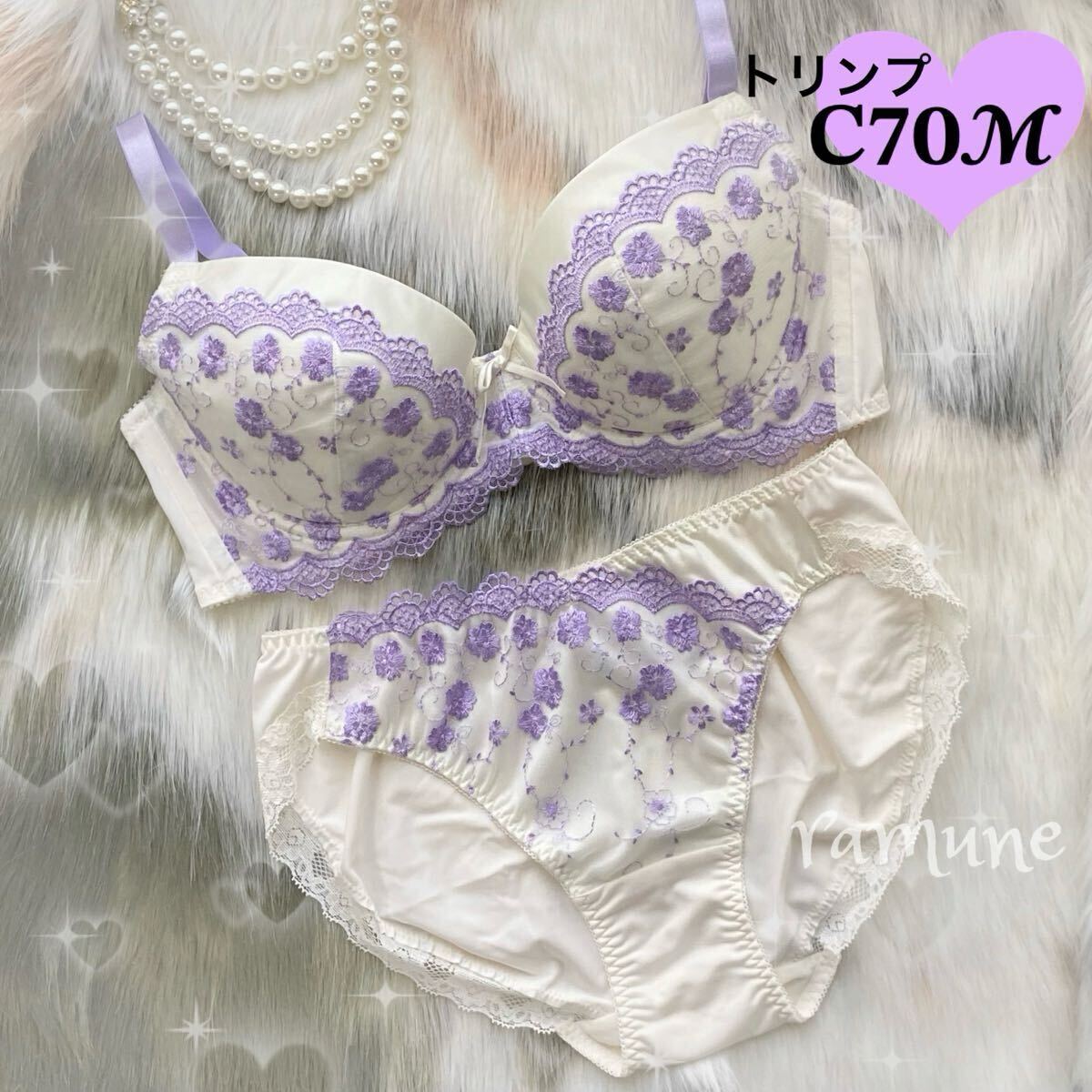 - ラスト【トリンプ C70-Mクリーム】新品 Triumph ブラ&ショーツ ブラジャーショーツ パッド付き 脇肉流れ防止 刺しゅう パンティ Cカップ