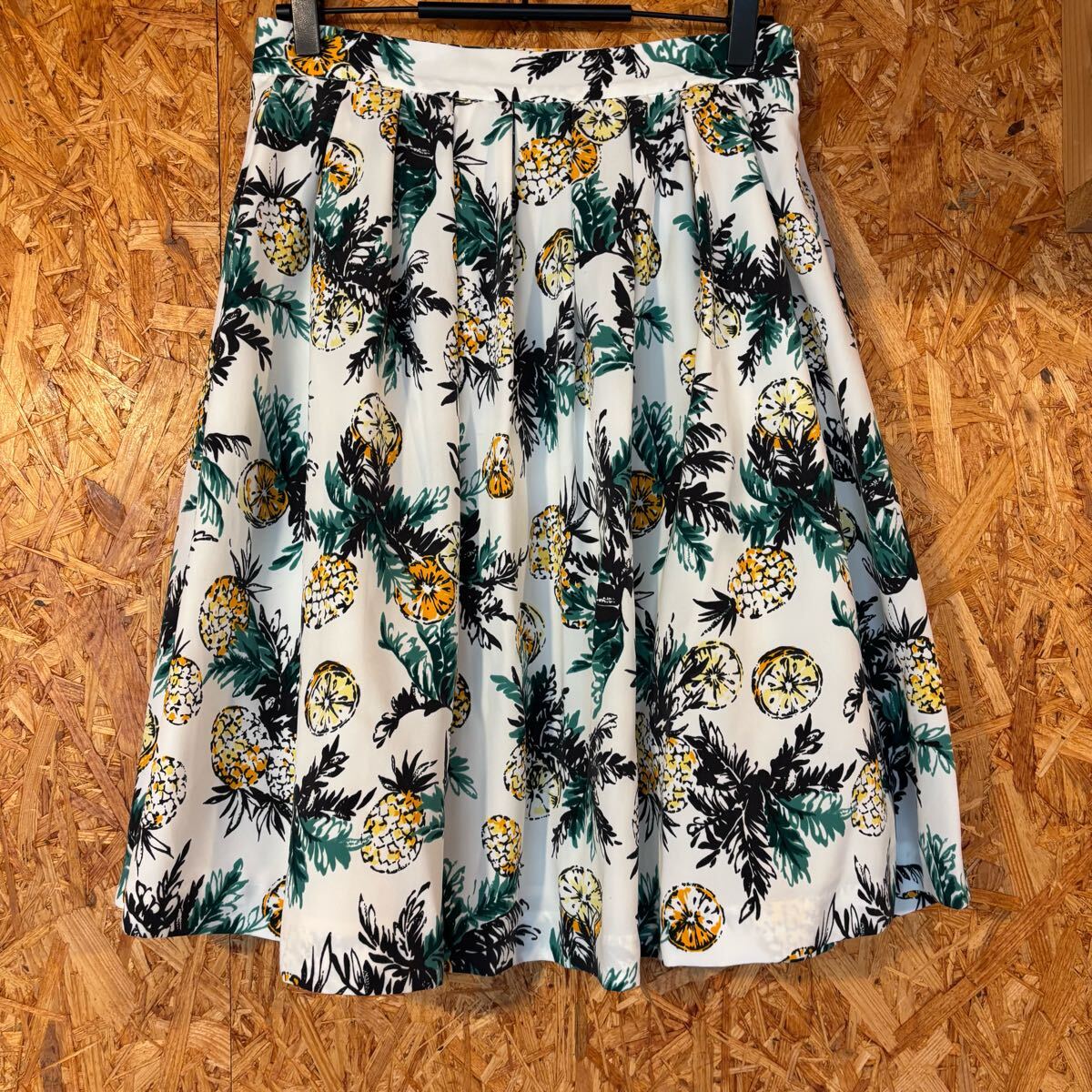 - 美品 index テロテロ生地 ひざ丈スカート パイナップル柄 ホワイト 4238