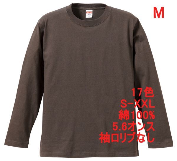 - 長袖 Tシャツ M チャコール ロンT 袖リブなし 綿100 5.6オンス 無地 無地T 長袖Tシャツ 丸首 コットン A514 ダーク グレー 501001 5010