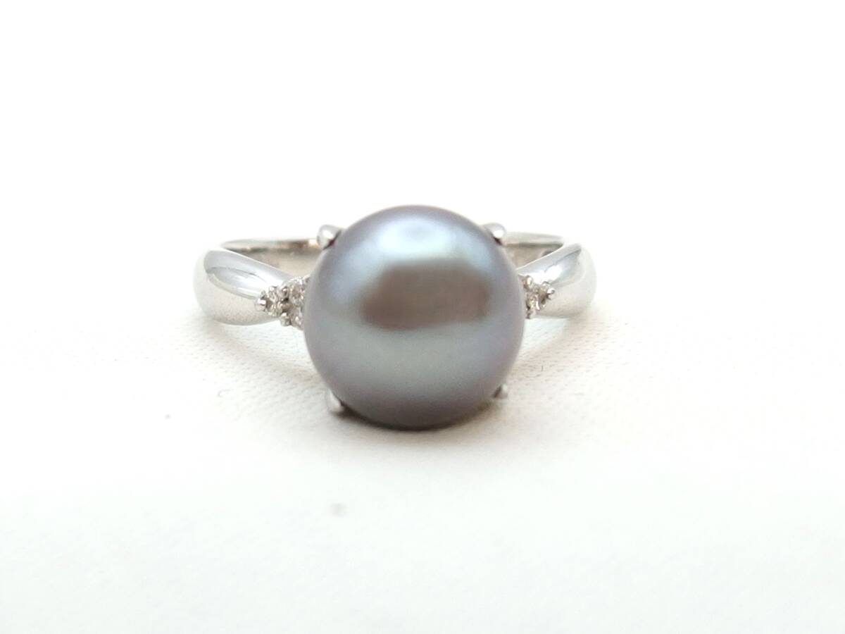 - Pt900 黒真珠 約10mm ダイヤ0.04ct リング 12号 /R4370