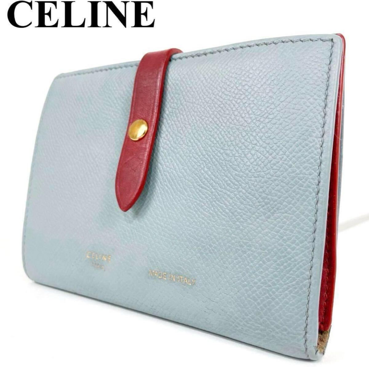 - 希少◎ セリーヌ CELINE ミディアム ストラップウォレット マルチファンクション 二つ折り財布 バイフォールドウォレット バイカラー