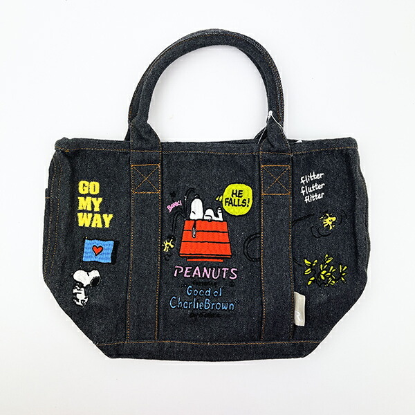 - スヌーピー PEANUTS 75th デニム ミニトートバッグ ブラック ROOTOTE(ルートート)コラボ SNOOPY