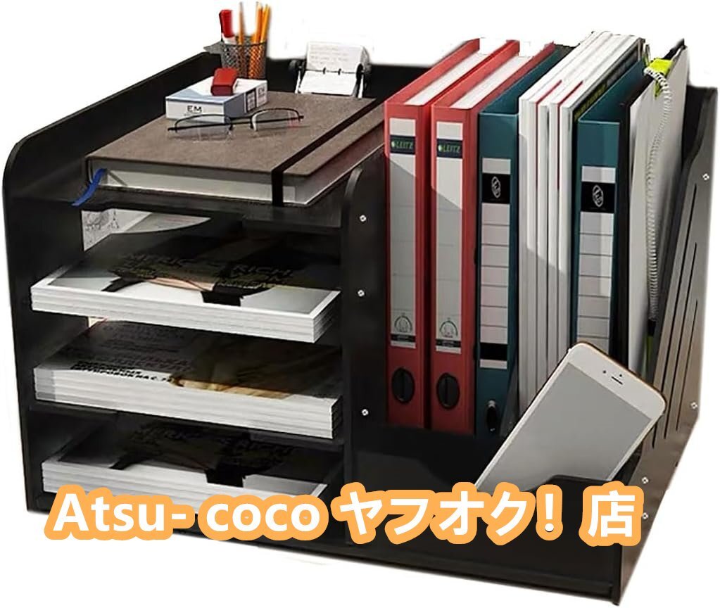 - 卓上収納ラック 卓上収納ボックス デスク上置き棚ファイルボックス大容量オィス収納 机上収納ボックスA4対応 ペン入れ(ブラック)