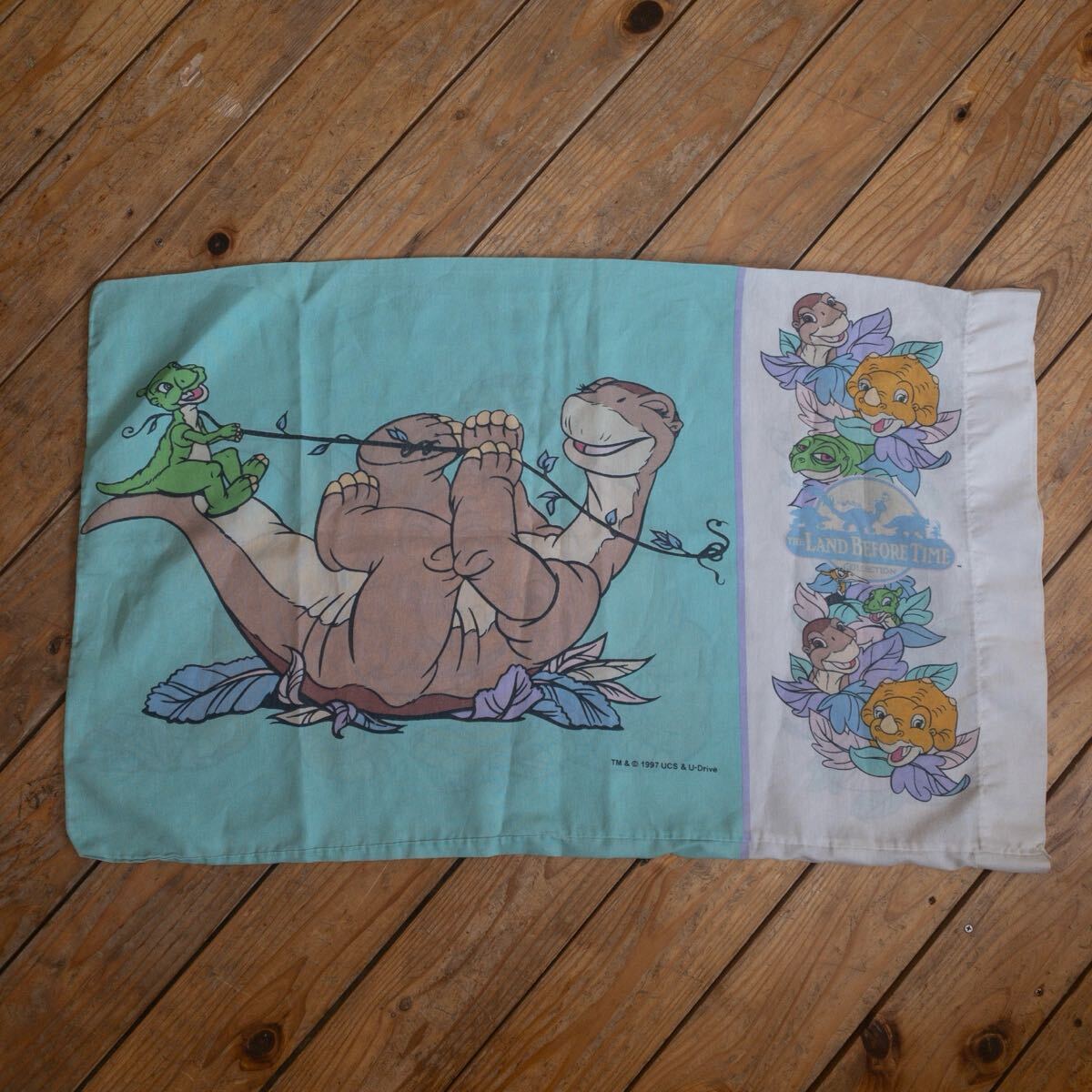 - USA ヴィンテージ ピローケース 枕カバー リトルフットの大冒険 恐竜 ランドビフォー リメイク生地 袋状両面プリント アメリカ仕入 B2572
