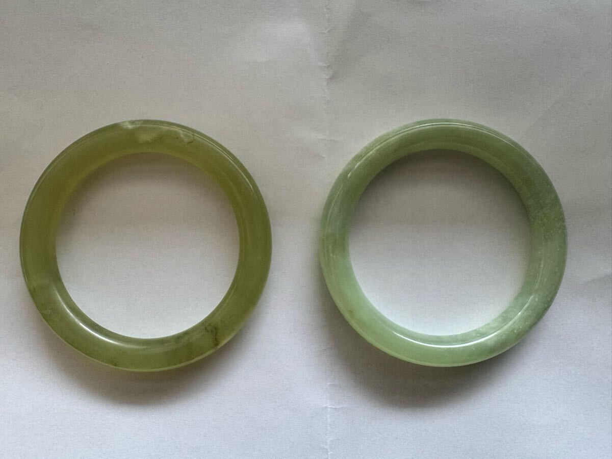 > ★保管品★天然石 バングル 一対(2本) 内径5.8cm外径8.0cm 半透明 ネフライト 大理石 薄緑 ペールグリーン