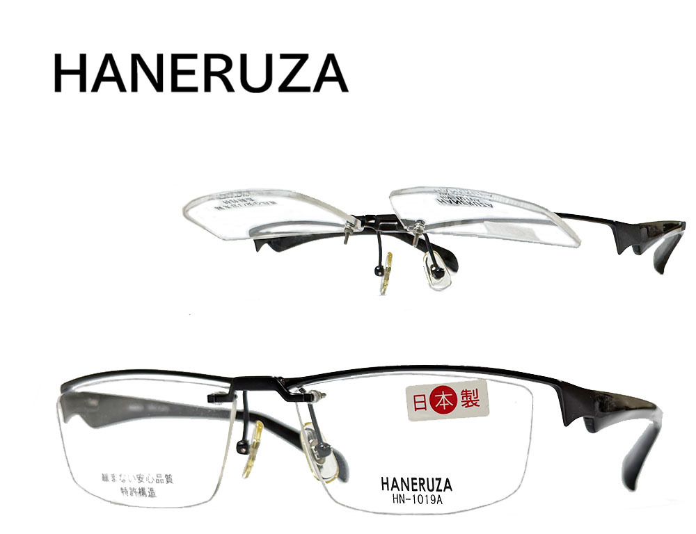 > 【HANERUZA】ハネルザ 跳ね上げ式 単式 メガネフレーム HN-1019A col2 ブラック
