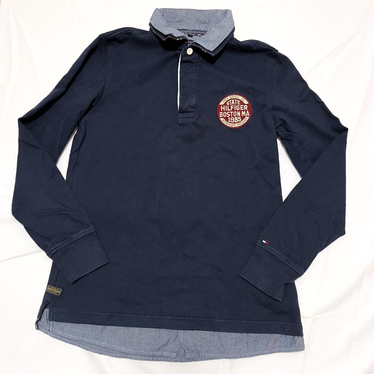 - 和714★ TOMMY HILFIGER トミーヒルフィガー レイヤード ラガーシャツ ポロシャツ ワッペン L ネイビー メンズ