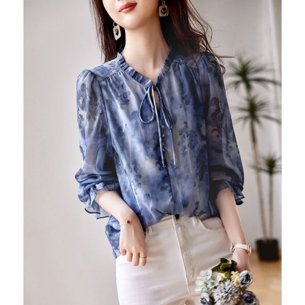 - レディース トップス ブラウス フリル シフォン 花柄プリント FY53