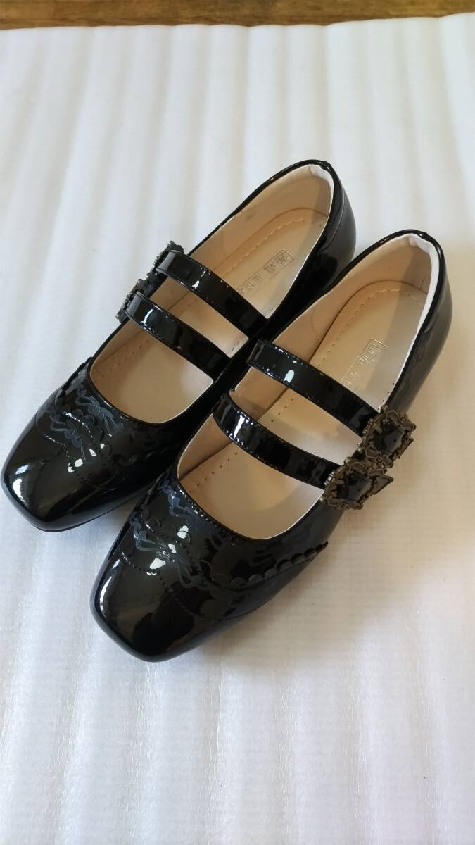 - No.2673_海外ロリィタ_未使用黒エナメルダブルストラップパンプス