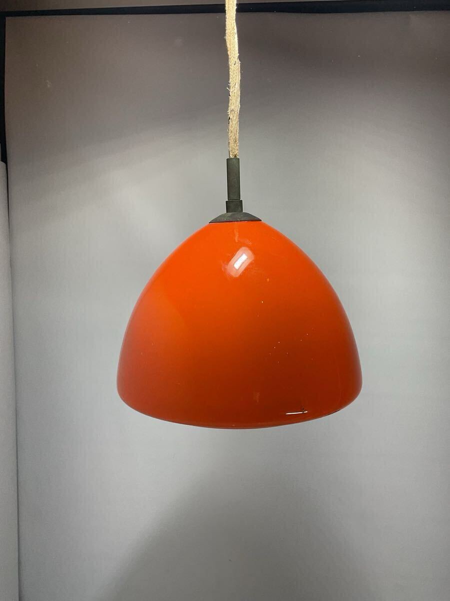 - 詳細不明 ペンダントライト ミッドセンチュリー スペースエイジ レトロ アンティーク オレンジ / 昭和レトロ 照明 乳白色ガラス