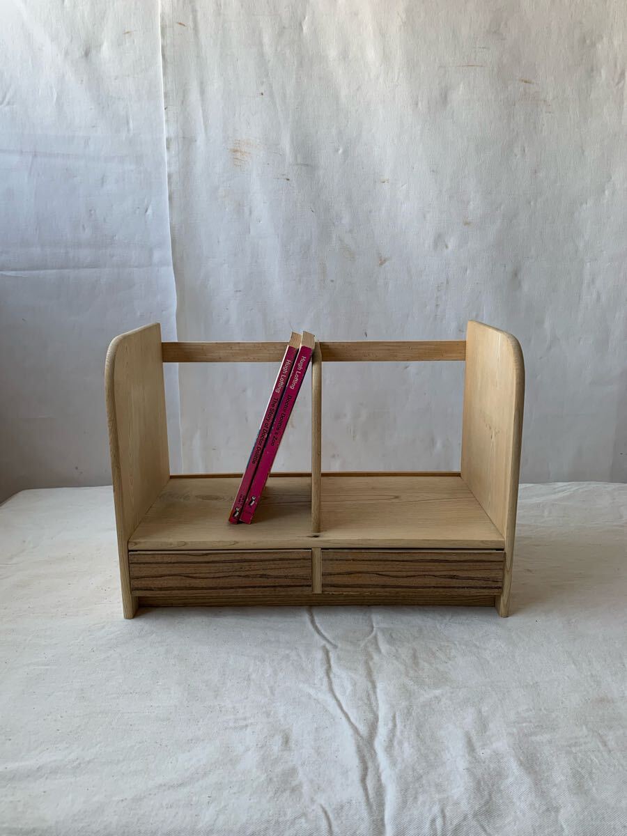 - デッドストック 引出し2個付木製本立て卓上ブックスタンド インテリアディスプレイ古道具アンティークビンテージ什器レトロ小家具飾り棚