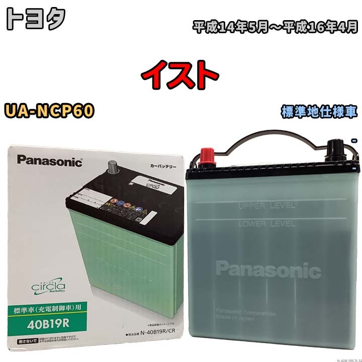 - 国産 バッテリー パナソニック circla(サークラ) トヨタ イスト UA-NCP60 平成14年5月~平成16年4月 N-40B19RCR