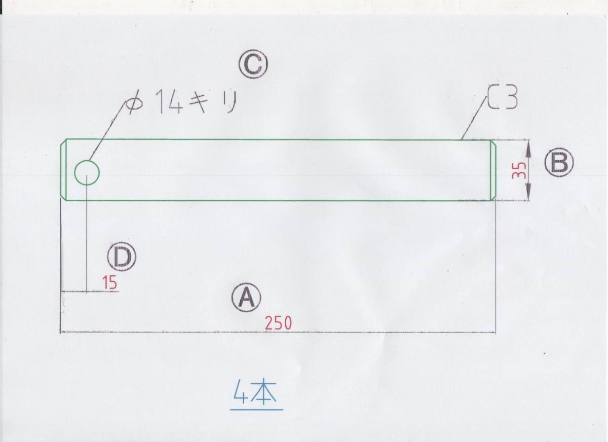 - NO 983 Φ35用 全長250mm バケットピン 4本 1セット