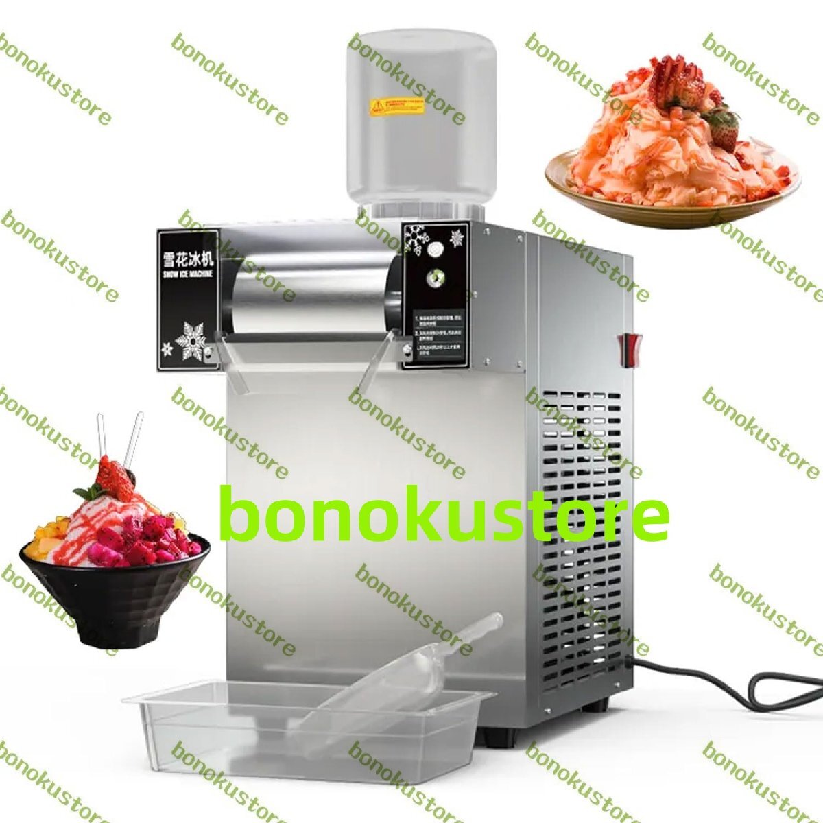 - 200kg/24時間電動スノーコーンシェーバー 1200W業務用スノーフレーク製氷機(材料バレル2個と受箱付き) 9段階速度調節可能