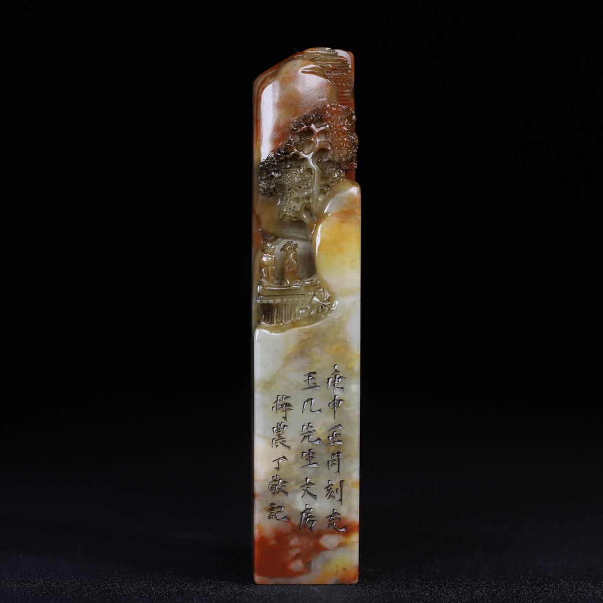 - 唐物 【清代篆刻家 丁敬】寿山石 松下論道 人物紋 印鑑 天然石 手彫 篆刻 古印材 極細工 中国古玩 骨董品 古美味 古美術品 D64