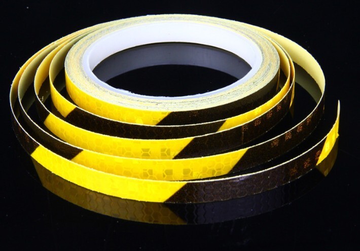 - 【普通郵便送料無料!】リフレクターシール カラー シール ステッカー 幅1cm×8m セーフティーシール (黄黒)(000)
