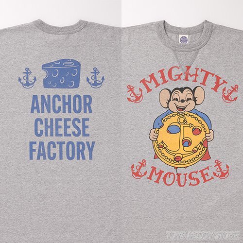 > トイズマッコイ TOYS McCOY MIGHTY MOUSE TEE ANCHOR CHEESE FACTORY マイティ・マウス Tシャツ 日本製 MADE IN JAPAN アッシュグレー